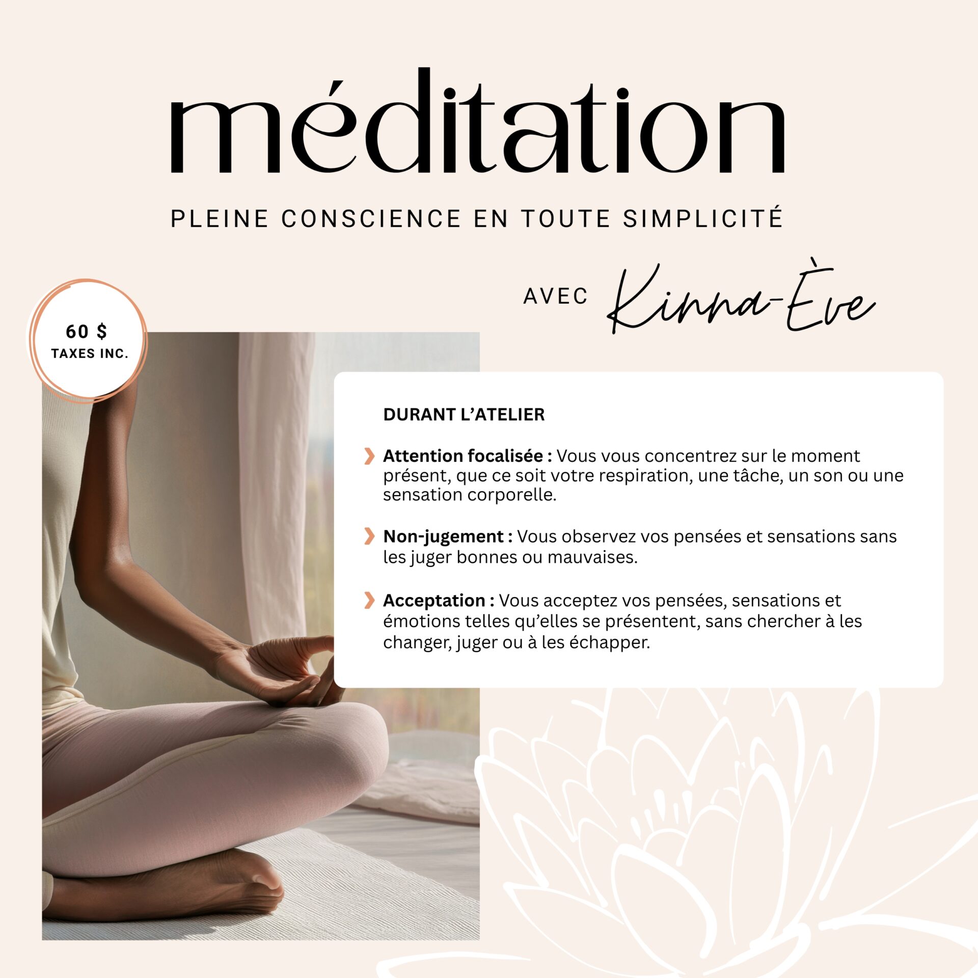 Méditation de groupe et en atelier de fin-de-semaine sont offerts.